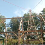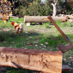 - une phase de tracé et de taille des deux premières fermes sur poteaux en bois de réemploi, sur 3 ou 4 sessions, qui a nécessité le nettoyage du gisement de réemploi,