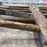 Dans le cadre du projet de recherche Carac'Terre du Projet National Terre, j'ai proposé un chantier participatif de construction d'une maquette de mur et d'une maquette de plancher en bois, qui ont servi de support de fixation et de pose à de la construction en terre crue.